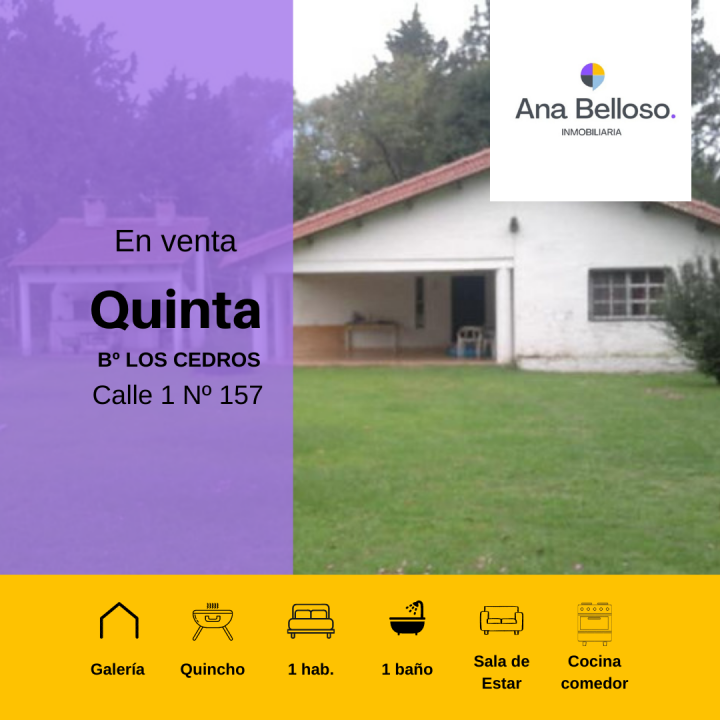 Casa Quinta de 1 dormitorio, sala de estar,1 baño, Amplia cocina comedor, espaciosa galería, lavadero,